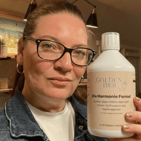 Karin V. August 2025Verifizierte KäuferinEndlich wieder beweglichWas man halt so hat, wenn man die 50 überschritten hat... Morgens steif, die Gelenke taten weh. Eine Freundin empfahl mir GoldenHer. Der Geschmack ist angenehm. Ich fühle mich nach 8 Wochen vitaler und beweglicher. Fühle mich einfach wieder mehr 'wie ich selbst'.